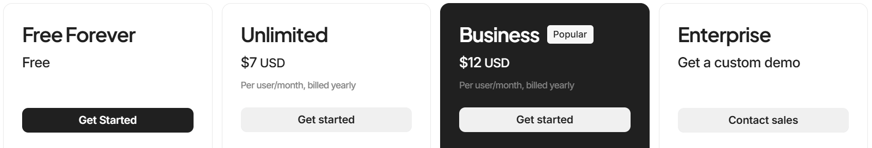 Perfect for individuals or small teams, this plan offers unlimited tasks, 60MB storage, basic boards, and collaborative docs. It’s completely free with 24/7 support to get started immediately. - Unlimited Plan ($7/user/month, billed yearly)